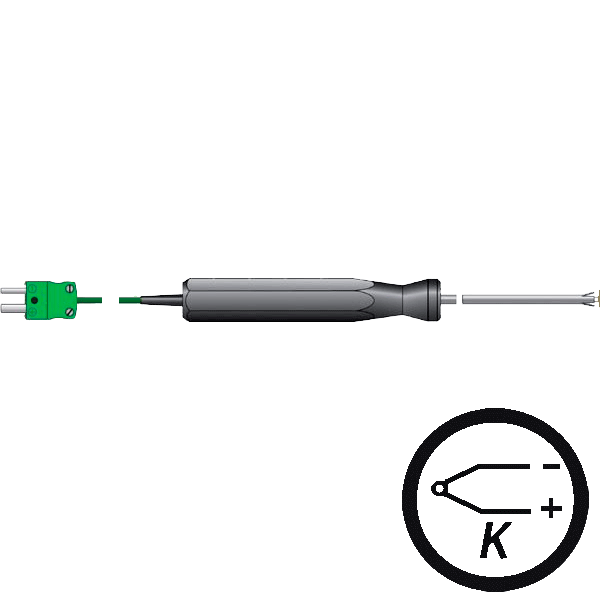 With a measuring range going from -100 to 600ºC and a 1m long cable, this type K thermocouple probe is a ideal for a variety of surface temperature measurements. Catering, industrial processes or HVAC are some of the multiple fields where this probes operate.